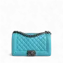 Replica Chanel Boy Medium - 25CM Quilted Lambskin Blue Ruthenium Silver Hardware Series 19