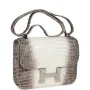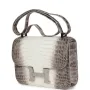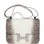 This rare Constance is of Himalaya Matte Niloticus Crocodile leather with palladium hardware and features tonal stitching, a "H" snap lock closure, exterior pocket, and an adjustable shoulder strap.