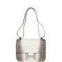 The interior is lined with Gris Tourterelle lambskin and has two open pockets on the front wall, one with a removable mirror, and a back zip pocket.