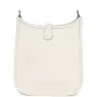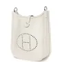 This Evelyne TPM is in Gris Pale clemence leather with palladium hardware and features tonal stitching, large perforated H in circle (front), pull tab top closure and a matching removable canvas and leather shoulder/crossbody strap.