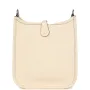 This Evelyne TPM is in Nata Clemence leather with palladium hardware and features tonal stitching, large perforated H in circle (front), pull tab top closure and a Nata removable canvas and leather shoulder/crossbody strap.